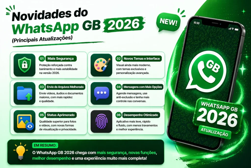 A atualização do WhatsApp GB 2026 é uma nova versão do aplicativo que inclui melhorias, correções e novos recursos. Essas atualizações são feitas para melhorar a experiência do usuário.